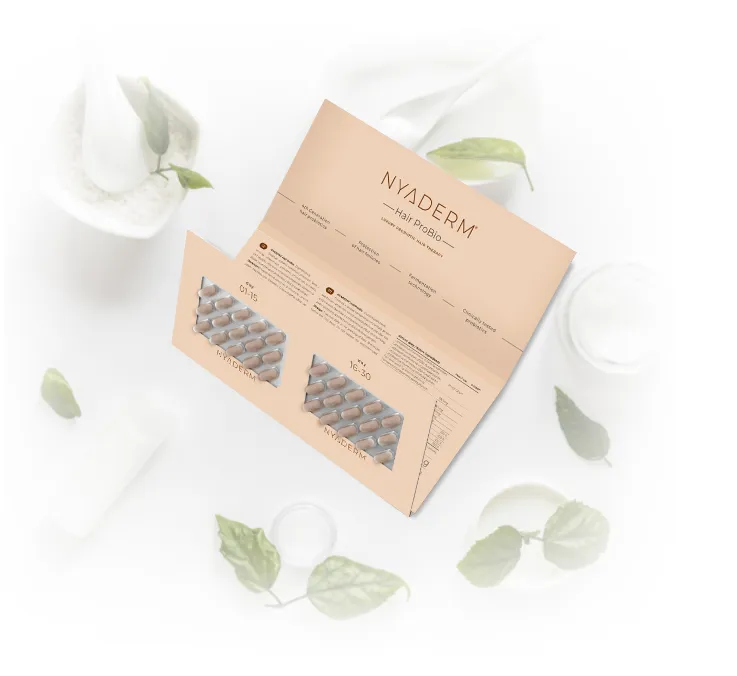 NYADERM® Hair ProBio dietary supplement contains carefully selected ingredients that effectively and efficiently improve hair growth and quality. The effects of the active ingredients have been verified in dozens of studies. The conclusions of the most interesting tests are presented below.